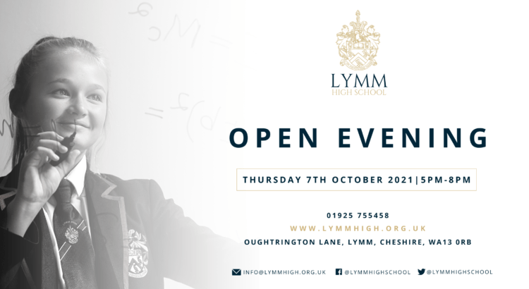 The staff and students at Lymm High School warmly invite you to our Open Evening taking place on Thursday 7th October 2021, 5pm-8pm.