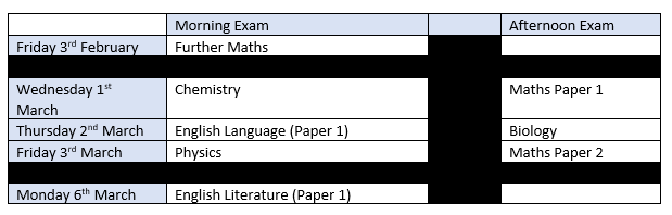 Further to Friday’s letter, please find below an updated version of the Core Mock timetable for Year 11 students. All students should have their revision well underway, with staff offering guidance and support in lessons and at revision sessions.