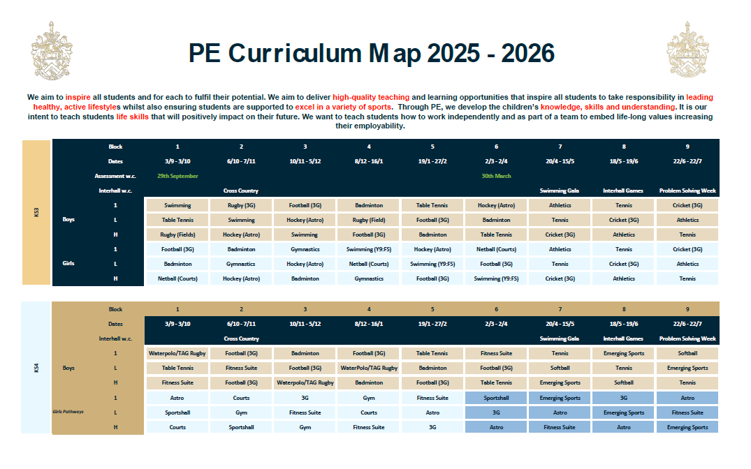 - It is our intent to teach students life skills that will positively impact on their future. We aim to deliver high-quality teaching and learning opportunities that inspire all students to take responsibility in leading healthy, active lifestyles whilst also ensuring students are supported to excel in the chosen sports. We want to teach students how to work independently and as part of a team to embed life-long values.