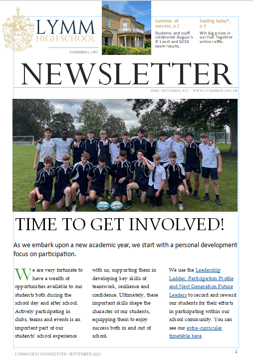 Click here to read the September issue of our school newsletter, which includes details of our summer exam results, our new Student Leadership Team, and the launch of our exciting Hall Together online raffle.
