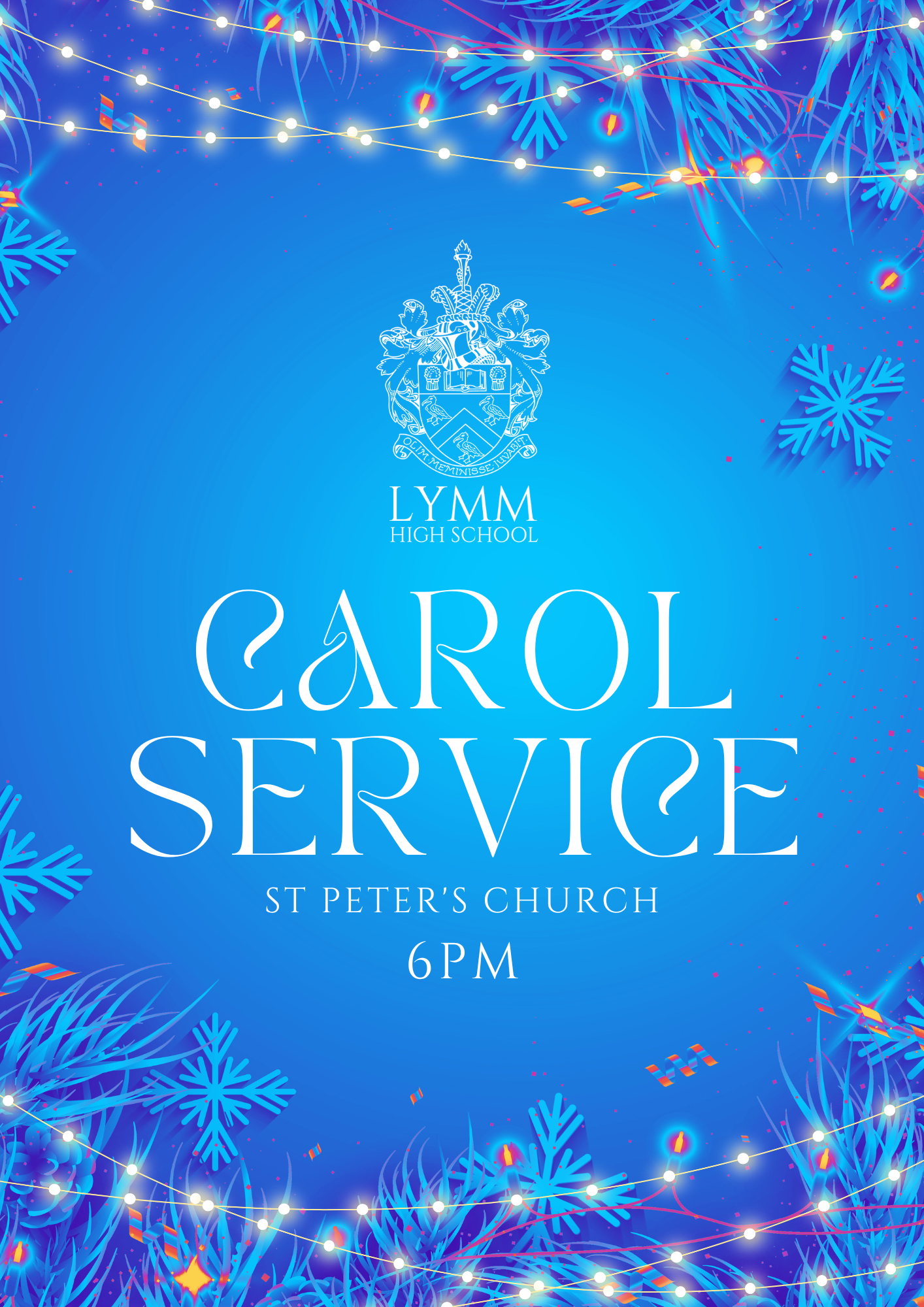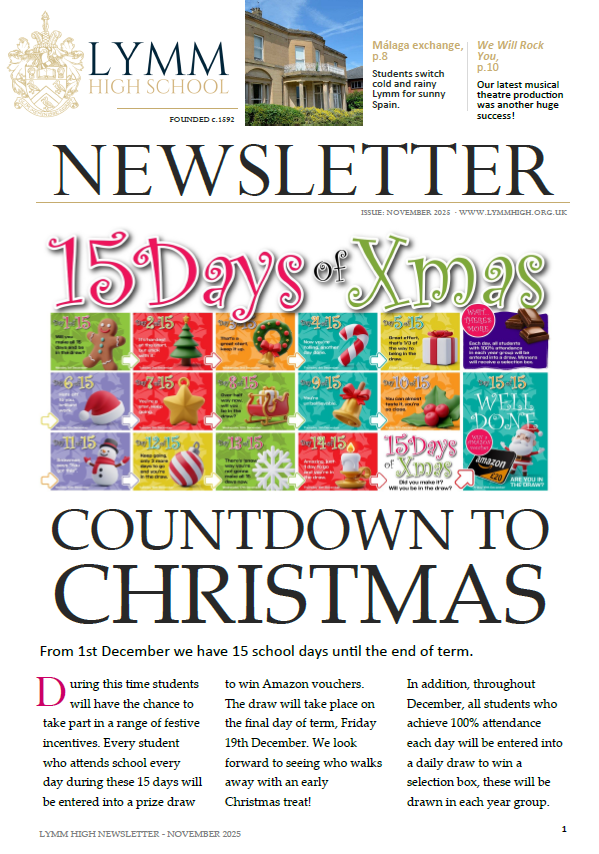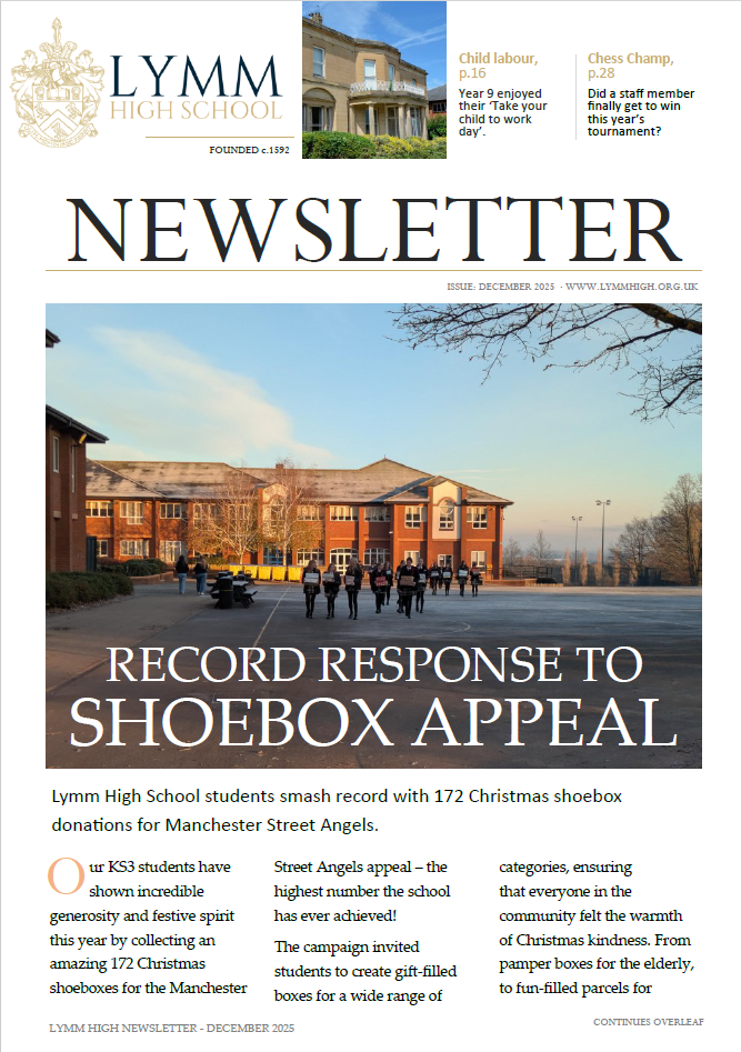 Lymm High’s Carol Service is taking place at St Peter’s Church at 6pm on Monday 15th December. All are welcome.