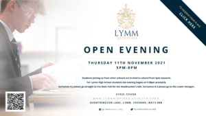 The staff and students at Lymm High School warmly invite you to our Open Evening taking place on Thursday 7th October 2021, 5pm-8pm.