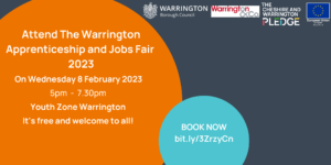 This years Warrington Apprenticeship and Jobs Fair is being held at the Warrington Youth Zone on Wednesday 8th February 5pm – 7.30pm