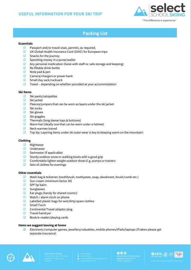 Please find some guidance on passports below and a kit list attached (sent directly from the ski tour coordinator):